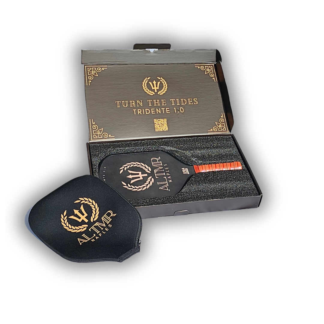 Introducing the Tridente 1.0 Pickleball Paddle by ALTMR Naples - a precision-crafted game-changer for players of all levels. With T700 raw carbon fiber and a Honeycomb Polymer Core, this paddle offers exceptional control and power. The 5.5-inch handle length and rounded edges provide quick swing speed for a competitive advantage. Includes a neoprene paddle cover and is designed with love in Naples, Florida.